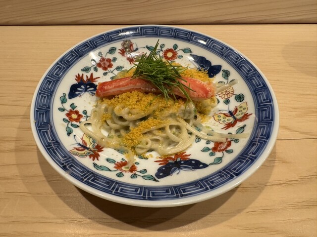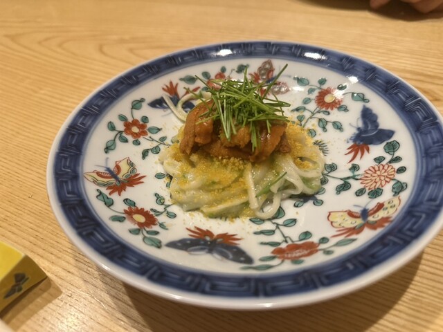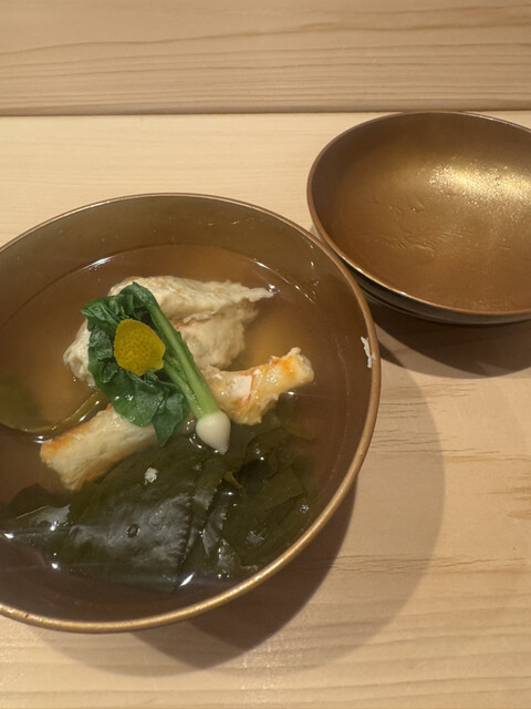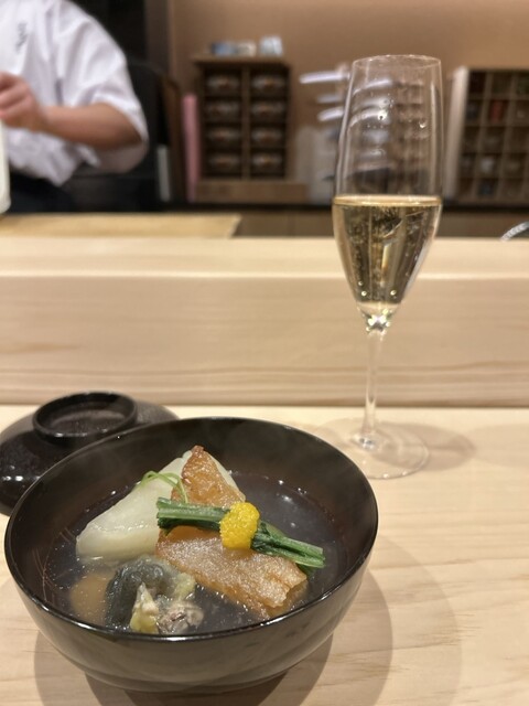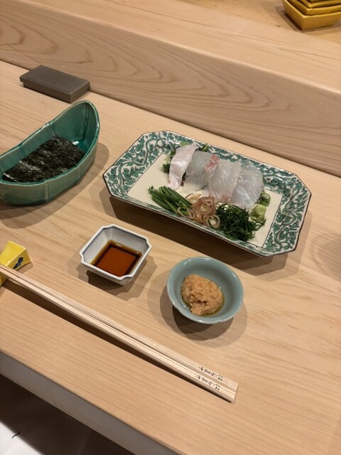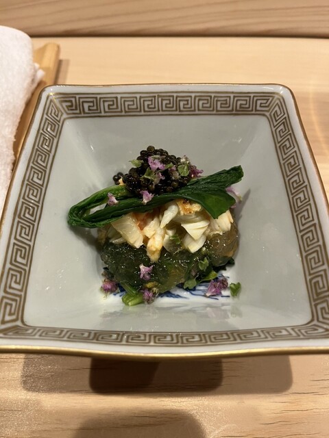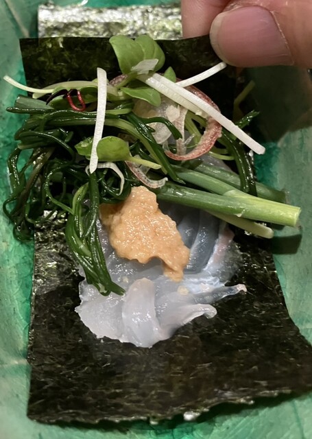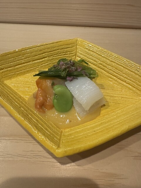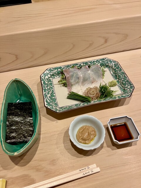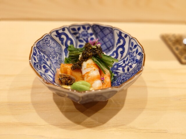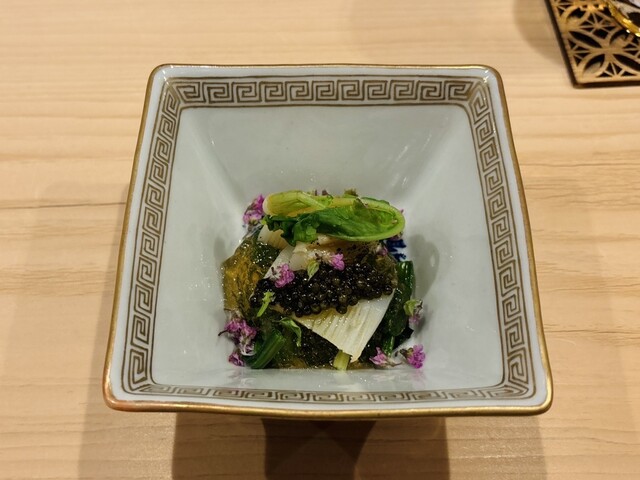 また、ヒラメと野菜を包み、鮟肝を乗せる「手巻き」は独創性もあり美味。わさびや茗荷も、優しい味わいに仕立てられていました。