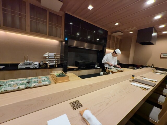 入り口から着物姿の女性が、奥のカウンター席まで案内してくれる♪