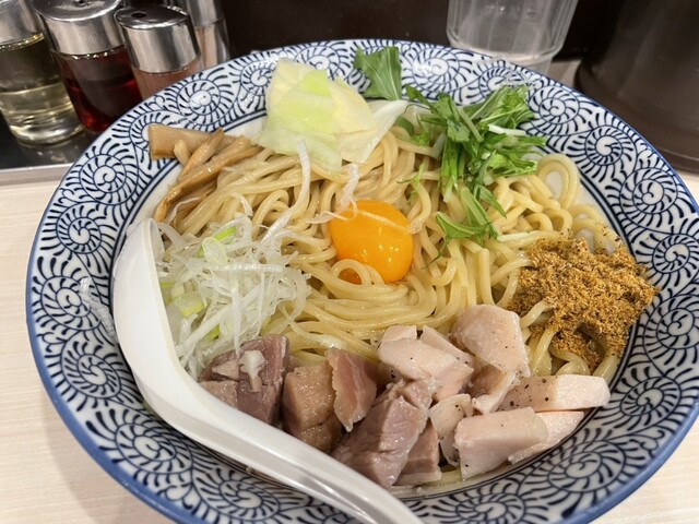 このエリア、長らく訪れていませんでしたが、 その間に、大きな交差点の交点にできた噂だけは聞いていました。 早速入り、もともと決めていたつけ麺を注文。 麺は太麺と細麺の2種類がデフォルトで相盛りになっており、 大盛等頼まなくても他の店よりボリュームがあります。 そこに添えられる、クリ... 詳細を見る