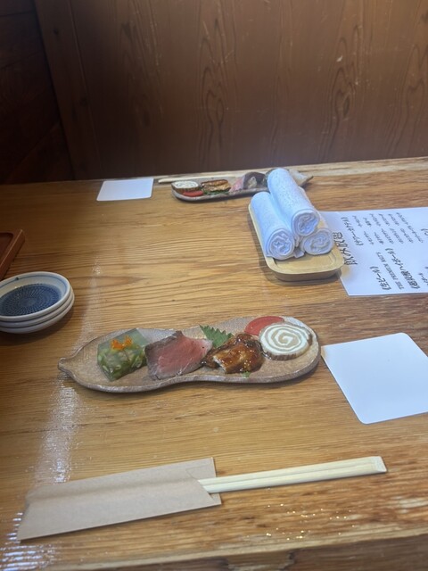 席はエントランスより少し低くなっていて、落ち着いた照明のせいもあり、穏やかな空間。 今回は9名で利用。 仙台料理のお店という事で、純和風。 お刺身、季節の天ぷら、炊き込みご飯、牛タン等など…。 デザートにはミニミニな柏餅。 大人女性の興味をそそる、上品かつ、ちょこっとかわいいお店。 格子戸で仕切られた半個室の雰囲気もよく、一席が愉しく過ごせました。 詳細を見る