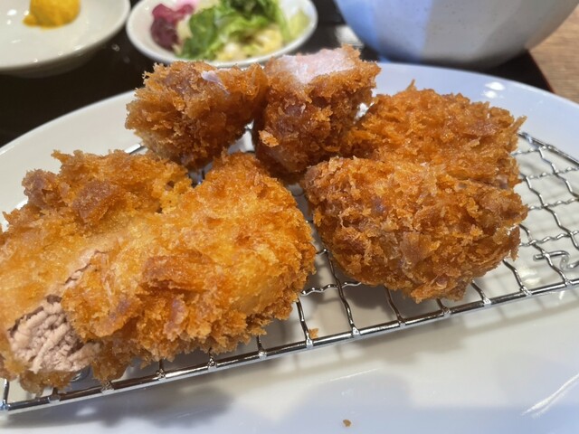 さて、ヒレカツだけど、やたらと衣が硬い。パリパリというより、バリバリ・ガリガリ。揚げる油の温度が高すぎるのではないかと思ったけど、他の方の口コミを見る限りは、これがスタンダードのようだ。最初は硬いのが気になったけど、時間の経過とともに空気中の水分を吸収するのか気にならない硬さになった。特徴を出すという面では意味があるのかもしれない。
