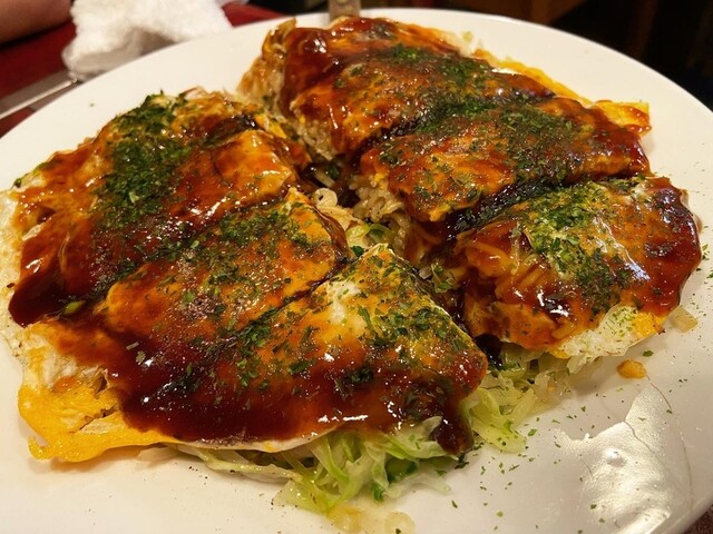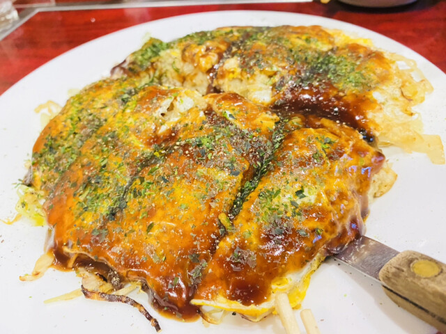 旦那さんと一緒に経営されてた店ですが、 今はおばちゃん一人で切り盛りしてます。 お通しの子持ちこんにゃく 豚キムチとチーズ焼き どれも美味しかったですが、 なんといっても、お好み焼き!! キャベツの蒸し加減も 肉麺の焼き加減も絶妙で 大変美味しく頂きました。 子持ちこんにゃくは広島の名物ですね。 これはこれで広島を感じられて良かった。 おばちゃんも愛想... 詳細を見る