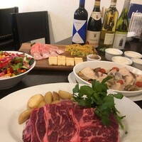 当店人気の白レバーパテや生ハム、サラミの盛り合わせ等前菜盛り合わせに始まり、グラタンサラダ、メインは、USプライムビーフ肩ロース肉のステーキ・自家製シャリアピンソースと鮮魚のアクアパッツァの2本立て!〆のパスタもついて満腹間違いなし! 飲み放題付でぜいこみ¥6000!