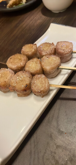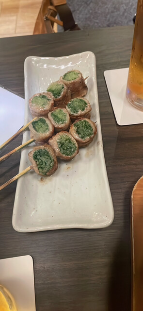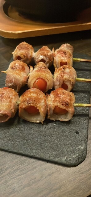 博多串焼きを柱に季節の野菜をお肉で巻いた「野菜巻き串」
