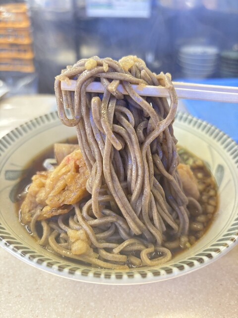 「朝早くからやってるお店」を 事前にチェックしてこちらへ。 立食いうどん/そば屋さんだと気づいたのは、 現地に到着してから。 「おぉ、駅直結以外でもあるのね・・・」 半分... 詳細を見る