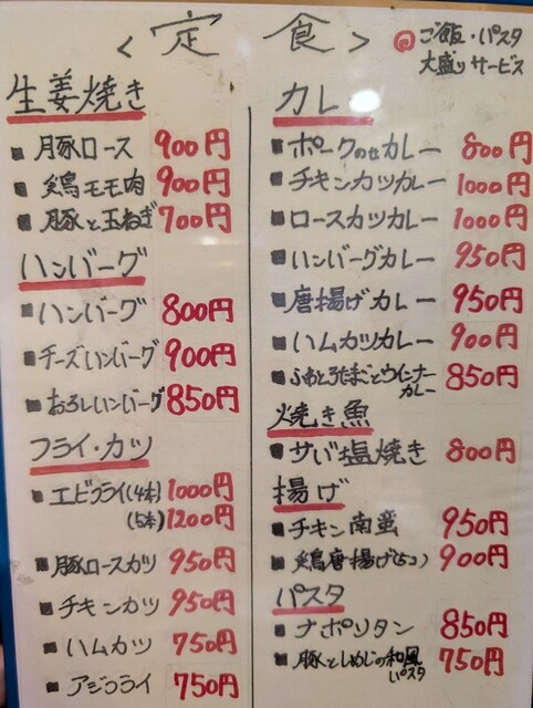 インスタント無し。全て手作り、テイクアウトも有ります。650円~ある定食!! |