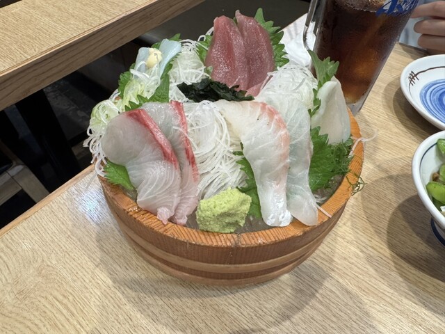 仕入れ部長が毎朝豊洲へ出向いて選定する鮮度抜群の魚を使った海鮮メニューが豊富!名物の刺身盛りは当店に来たらぜひご堪能いただきたい自慢の逸品です。お酒に合うアサリバターやうずらどんぐり、ご飯が進む手羽先やハムカツなどバラエティ豊かに取り揃えた料理をどうぞご満喫ください♪各種宴会にぴったりな飲み放題付コースは、+800円で地焼酎・地酒を含む飲み放題に変更可能なので、お酒好きな方にもおすすめです◎