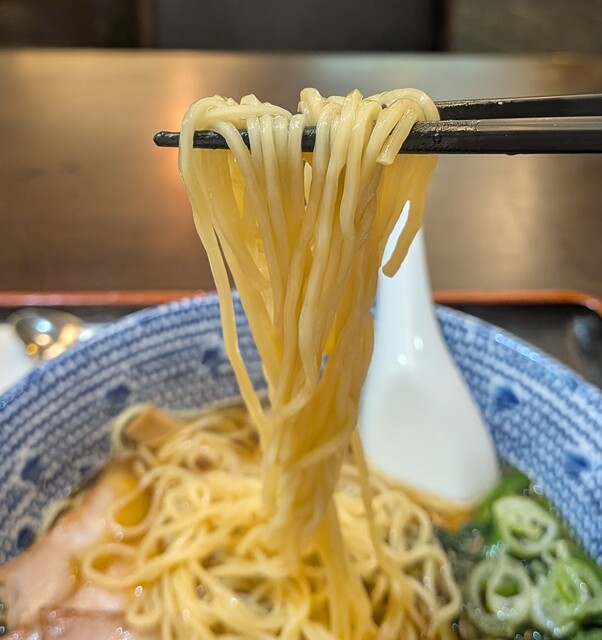 白濁した塩スープに、中太麺が沈み、刻まれた高菜と豚肉の餡かけが載...