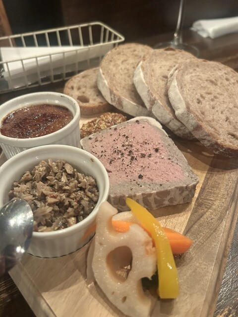 落ち着いた空気感の中で、肩の力を抜いて楽しめるヌメロ サンク。 カウンターに座ると、自然とグラスに手が伸びてしまう心地よさがあります。 最初の一杯は、キリッと冷えた泡。きめ細かく、喉を通るたびに気分をすっと切り替えてくれるような軽やかさ。 前菜の盛り合わせは、リエットやパテがしっかり主役で... 詳細を見る