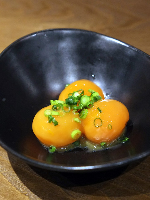 赤身と白身(というか脂身)の2貫、同行者は酒を飲む時には米は食べないと言うので、それぞれ選べるつまみで、肉寿司を食べておこうと思った。ごはんの粒々の食感が目立つように思えた。肉をよく噛むために、口の中でバラけたのだと思う。