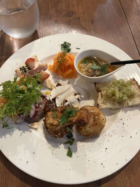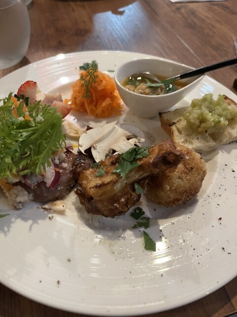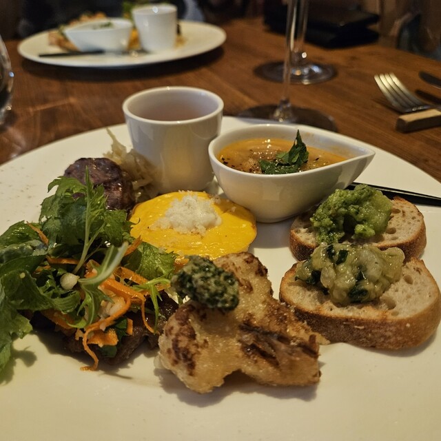 まずグラスシャンパーニュ、前菜盛り合わせをオーダー。シャンパーニュは泡立ちもしっかりしており芳...