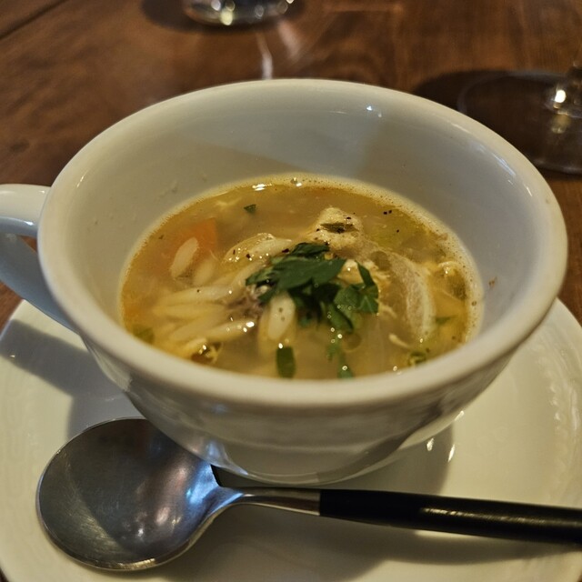 前々から気にはなっていたものの入店する機会がなく今日に至る。オーナーとシェフの2人体制のお店、カウンターはキッチンと対面式なのでお料理のほぼ全過程を見ることができる造り(エキセントリックなビルは隈研吾氏デザインらしい)。キッチンにはロースターが鎮座しており、お店がお肉に力を入れていることがわかる。