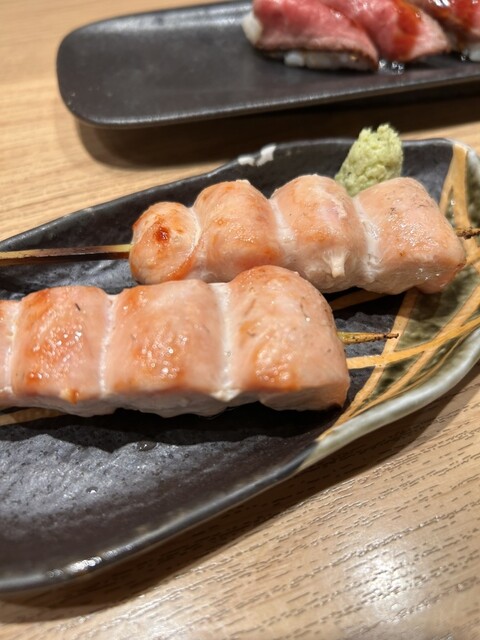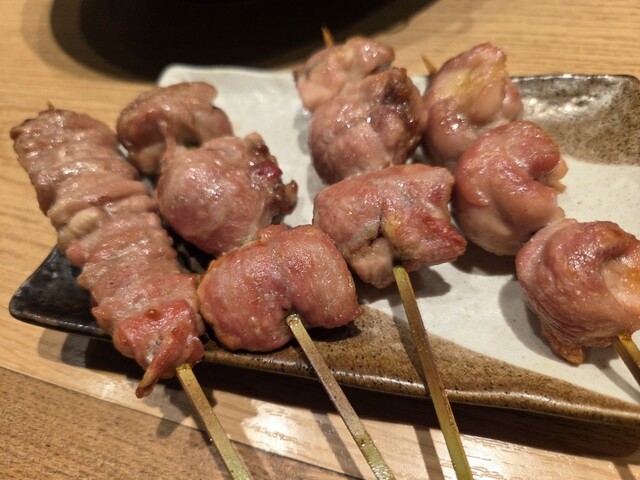 朝〆どりを使って丁寧に仕上げる焼き鳥屋さん。日本酒の品揃えが良いうえに、価格も良心的なのがうれしい。焼き鳥だけでなく、お刺身やソーセージ、サラダなどの一品料理までしっかりおいしくて、ついあれこれ頼みたくなります。 今回は「特選やきとり盛り合わせ(5本)」を注文。ささみ、レバー(タレ)、ねぎま、... 詳細を見る