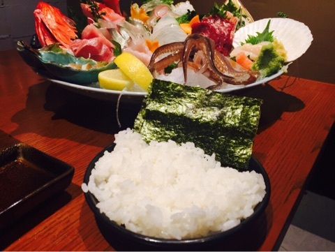 「うちは刺身が多いので、御飯サービスしているんです」と酢飯と海苔を持参!!!これは本当にうれしいですね。