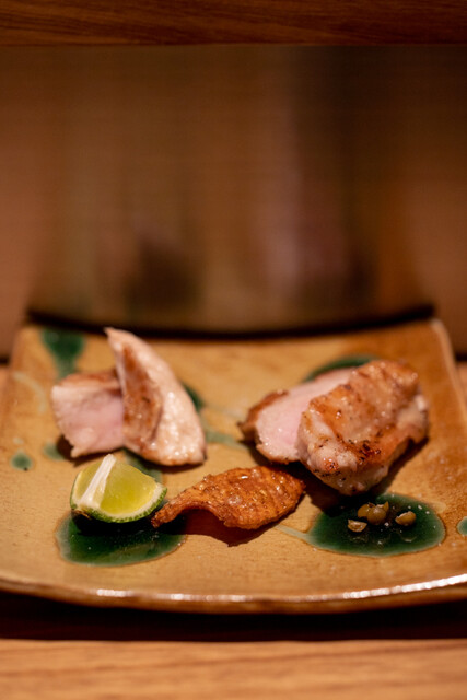 カウンター11席の洗練された落ち着いた空間で、生産者を訪問し厳選した各種地鶏を使った本格焼鳥と、ソムリエの店主が厳選したワイン・日本酒・お茶をお楽しみ頂けます。