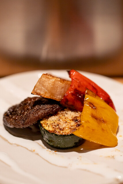 タレに潜らせて少し焦げ目を入れた野菜焼きの香りがたまらない。