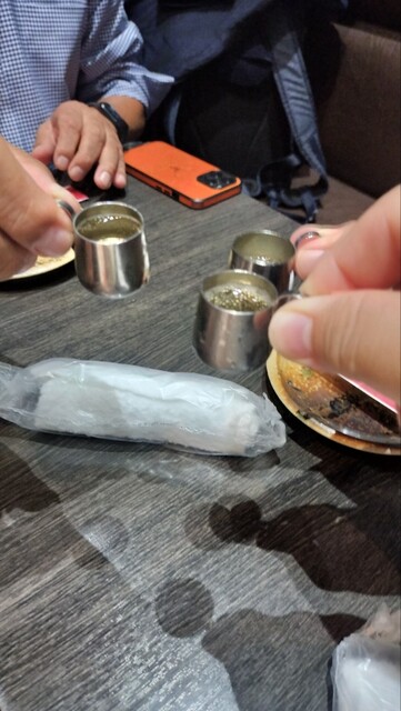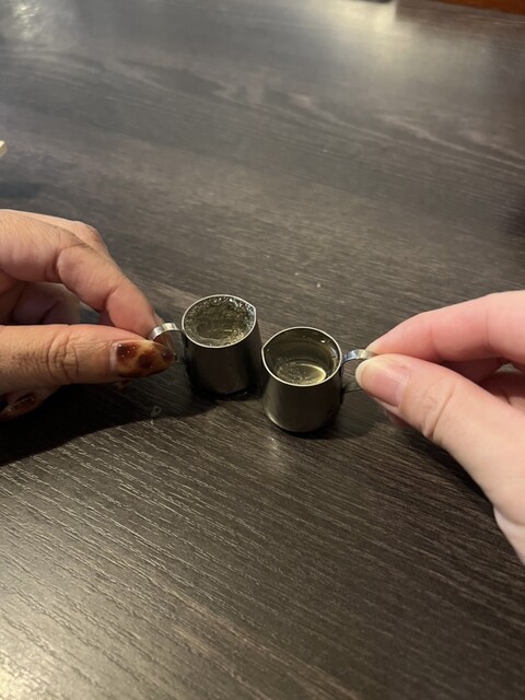 ファーストドリンクのみホールの方とじゃんけんして、勝てば1リットルのハイボール、負けたらアイスコーヒーのシロップの入れ物に入ったハイボールを5円でいただけます。