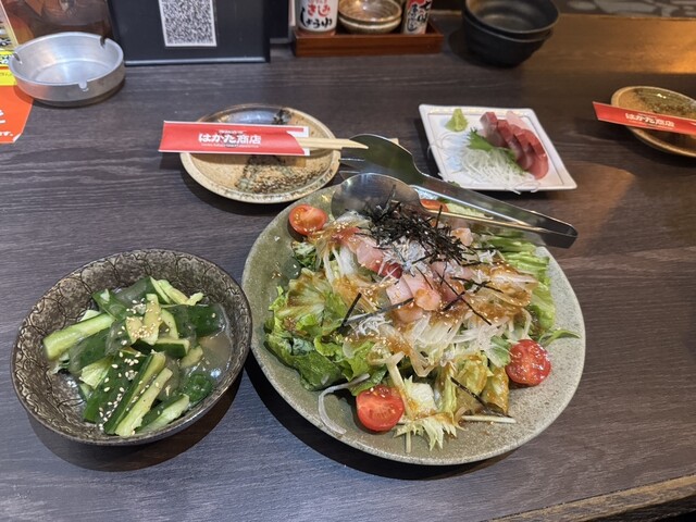 原価酒場なので飲み物安かったです。お通しが鰹のたたきだったのでわりと嬉しかったです。フードメニューもいろいろあってそこまで高くないし、料理の提供も早くて良かったです。2軒目利用にぴったりな居酒屋でした。