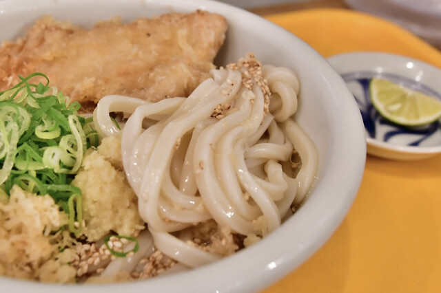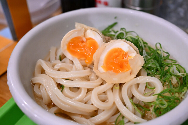 JR飯田橋駅西口から徒歩2分、早稲田通り沿い、飯田橋サクラテラスの斜向かいにあります。 見た目はうどん店にはほど遠い印象、夏の海岸沿いにありそうな爽やかな雰囲気です。 店内の殆どがカウンター立席、最奥にちょっとだけ椅子があります。 注文は食券制、入口近くの自販機で購入します。 メニューは し... 詳細を見る