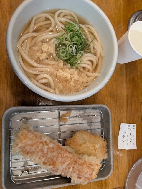 2025/12 訪問時3.62 鶏天&ちくわ天 かけうどん 温800 120g増量80 食券制 現金払い 乗換えタイムの飯田橋。改札外乗換え時間のリミットは60... 詳細を見る