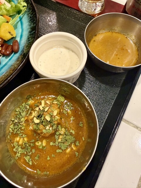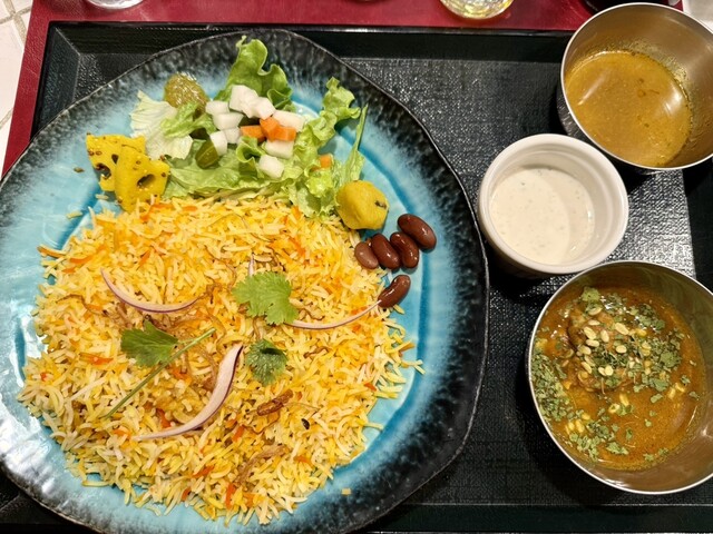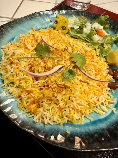 24軒目はコチラ♪コチラのお店は2階ですが1階の上等カレー様と二つで一つ、ニコイチ?な感じの不思議なお店様。カウンターのみの薄暗い店内は、ボリウッド映画のような音楽が抑えめの音量でかかっていてなかなか雰囲気があります♪ 当方ビリヤニが食べたかったので1種のカレーとビリヤニというメニューをチョイ... 詳細を見る