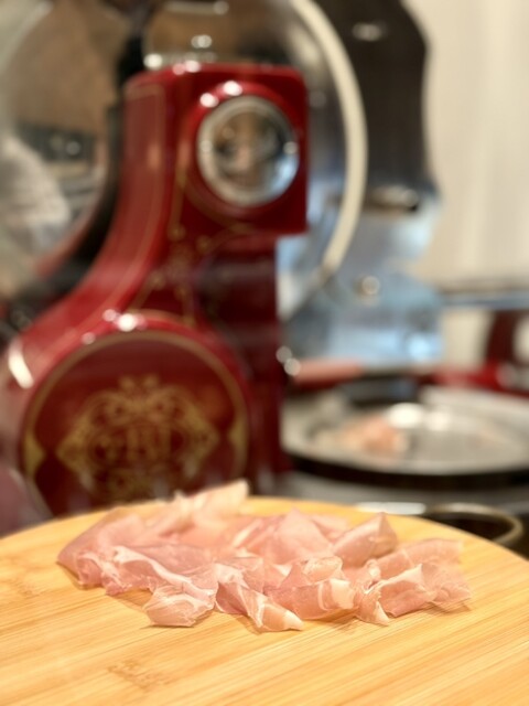 神楽坂駅よりすぐの位置に佇む当店は、世界各国より種類豊富な生ハムを取り揃えております。イタリアの老舗ブランド”Berkel(ベルケル)”のスライサーでカットしており、切りたての生ハムをお召し上がりいただけます!フワフワの生ハムをテイクアウトでもイートインでもどうぞ。シャンパンやスパークリングを中心にワインも豊富に揃えており、お得な酒販店価格でご提供◎生ハムとのセットメニューもございますのでぜひ。