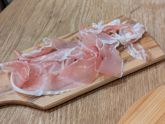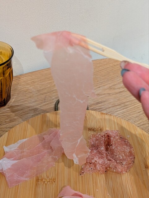 生ハムは空気を喰む食べ物だ。 限りなく薄くスライスした 通称「しゅわしゅわ」切り。 口溶けの良さの文脈で語られる事が多いが 表面積が大きい事でより多くの空気をはらむ。 ... 詳細を見る