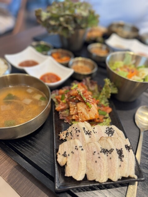 2025/04/07 神楽坂での用事の後に会社の同期と2人で訪問。 駅から徒歩すぐのビル2階にある韓国料理店「IAMSEOUL 神楽坂」。 モダンで落ち着いた雰囲気の店内は清潔感もあり、女子会やデートにもぴったりな印象。 今回は海鮮チヂミ・サムギョプサル・チャプチェ・ソルロンタン・デザ... 詳細を見る