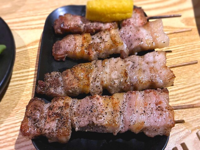焼き鳥、焼きとん、牛串、野菜巻きは串打ちの段階からこだわりを持ち、