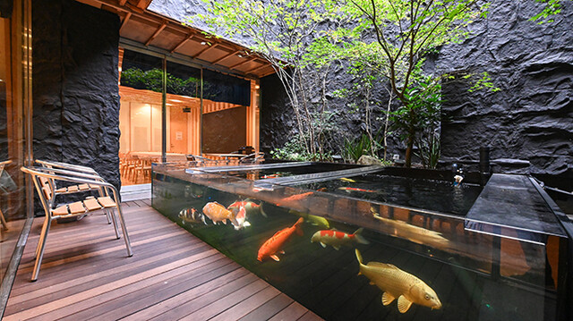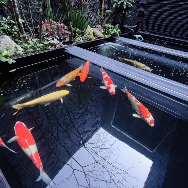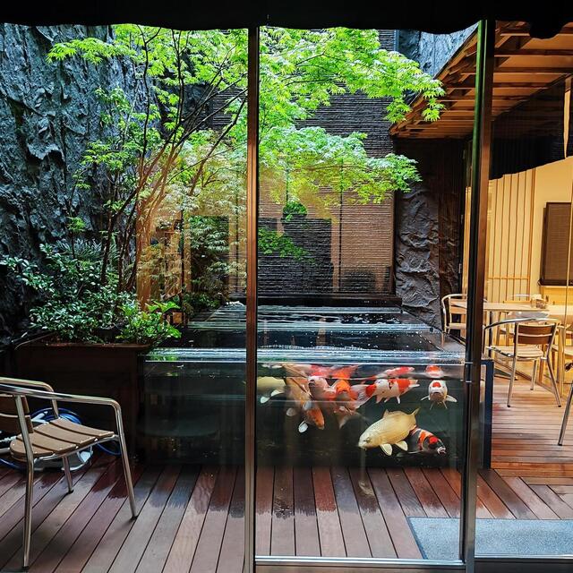 錦鯉が優雅に泳ぐ中庭がすぐそばに (by お店)