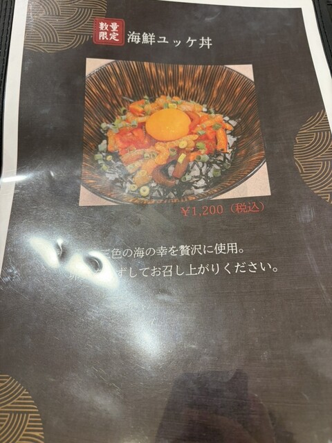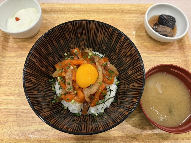 まぐろ、サーモン、ぶりが使われた海鮮ユッケ丼。甘みのあるタレであっという間に食べ終わりました。サラダ大盛、味噌汁、小鉢、杏仁豆腐もついてはきますが、値段を考えると少し寂しいか。重くないのが逆に良いと思います。サクッと食べたい時はオススメです