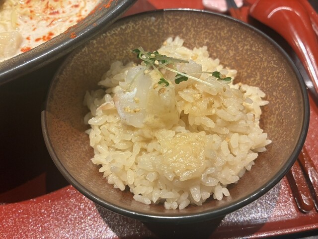 看板メニューの「鯛担麺」は鯛の出汁が効いており、最高の "鯛感"を"体感"する事ができます。余ったスープは"鯛めし"にかけて"鯛茶漬け"としてお楽しみ頂けます。