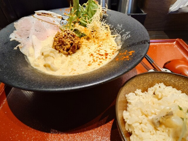 鯛担々麺のお店恋し鯛に訪問。 今回で3回目の訪問。 注文は鯛塩濃厚そば980円、和え玉350円を注文。 和え玉は日替わりらしい。 ◾️鯛塩濃厚そば スープは鯛の香... 詳細を見る