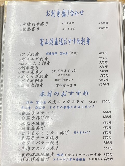 郷土料理でありながらも、洗練された和食を堪能することができた。また、同店の接客も素晴らしい。飲み放題のグラス交換も早く、全くストレスを感じない。店員さんの感じも良く、非常に楽しい時間を過ごすことができた。富山料理をこの価格で満喫できるとは想像していなかった、なお、何度か行ったことがあるこちらも富山料理の人形町にある新越は姉妹店とのこと。そりゃ美味いや。