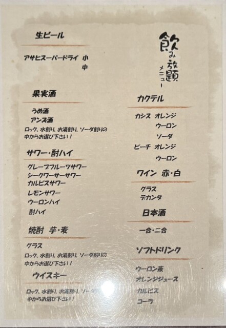 飲み放題メニュー