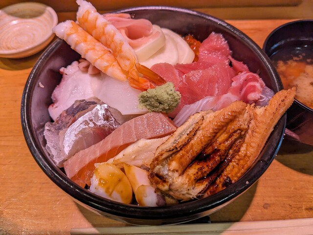 ランチタイムの来訪です。ずっと気になっていたお店でした。Googleマップではほとんど海外の方のコメントだらけとなっており多少の行列は覚悟していましたが、来店時は店内の待ち席で少し待つ程度で案内いただけました。 ちらし寿司(大)をシャリ少な目でお願いしました。オーダー後15分ほどで料理が提供さ... 詳細を見る