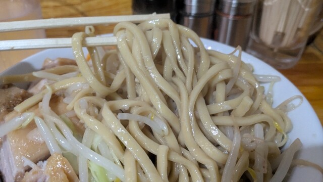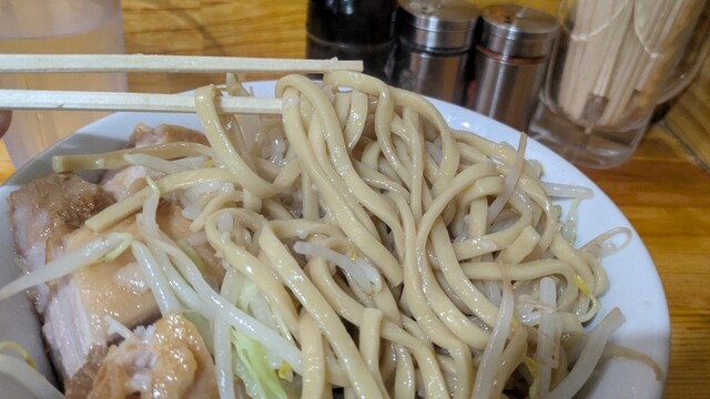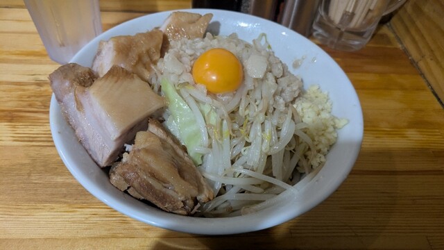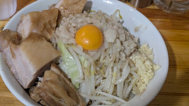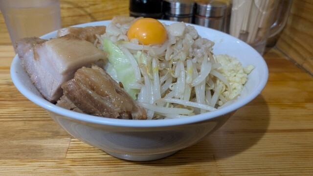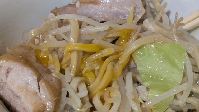 食券購入時にコール聞かれます。ニンニクあり、アブラマシ、チーズありでお願い...