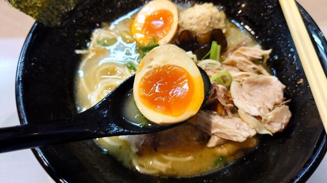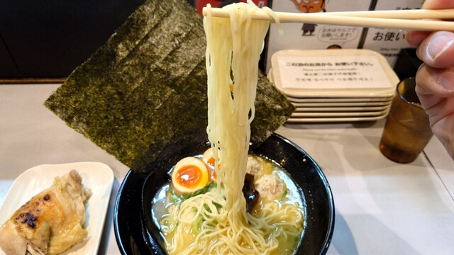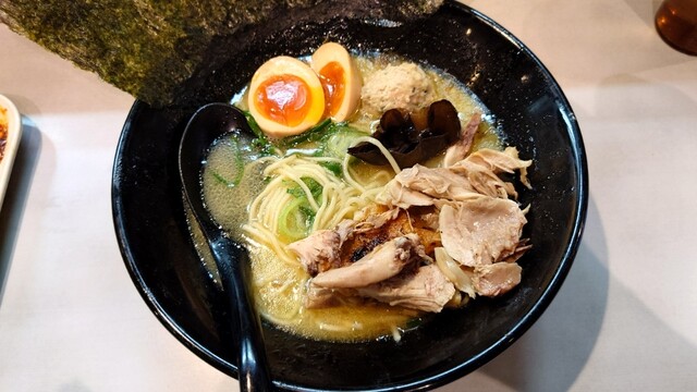 鶏王けいすけ秋葉原店へ。けいすけ系は久しぶりです。メニューは鶏王らーめん(鶏白湯)、鶏そば(鶏清湯)、鶏王つけ麺、鶏王担々麺。味玉入り鶏王らーめん並盛をいただきます。 提供される... 詳細を見る