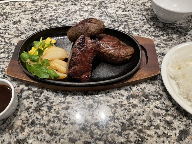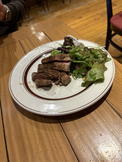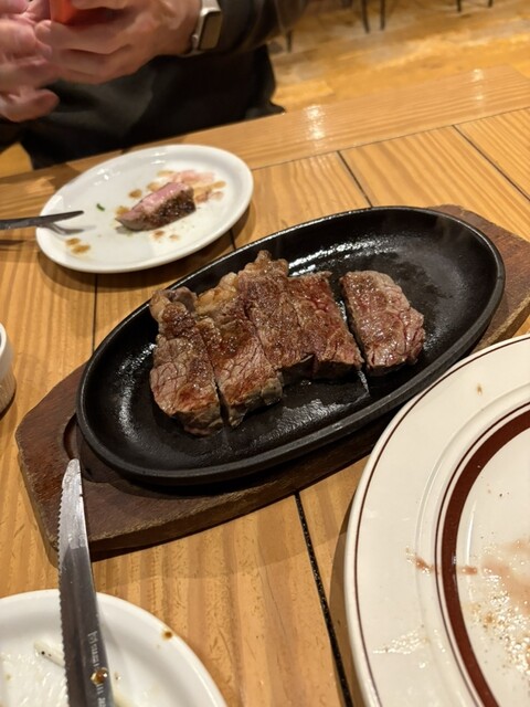 気になったいた当店に漸くの訪問でした。職場の同期と4人でお邪魔しました。私はステーキが食べたくてサーロインステーキを標準の150gでオーダー。同僚の女性はカレーライスをチョイスしましたが、このカレーライスはご飯が300g、カレールーが300gだそうですが、女性ということでご飯は気を利かせて少なめに!優しい心配りですね。さて、ステーキは濃いめのステーキソースが分厚いステーキに良くマッチしていてご飯が... 詳細を見る