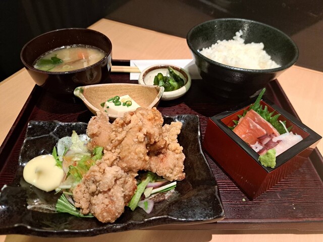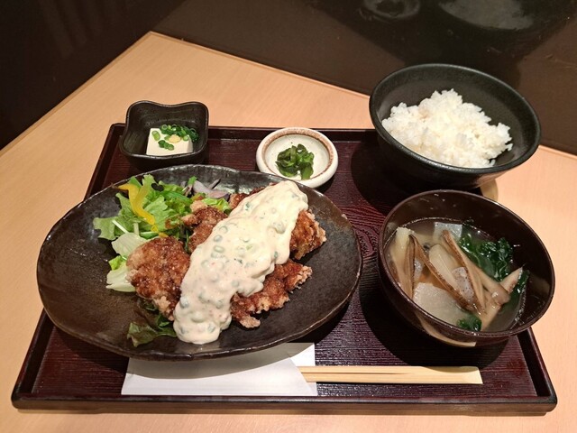 UDXで定食類の気分で物色しておりましたらこちらでひっかかりました。元々はえぞ鹿の定食あたりと思って入店しましたが,無難なザンギ定食をごはん半分で発注しました。ザンギは揚げ置きではなく注文の都度揚げていました。ですので熱々で供されます。味噌汁はあら入りで出汁が良く出て美味しいです。そしてもちろんザンキは大振り,骨なし,下味バッチリで美味しいです。ソースらしきものが付いてきましたが,使いませんでした...