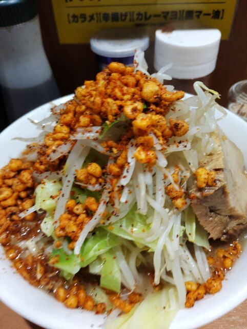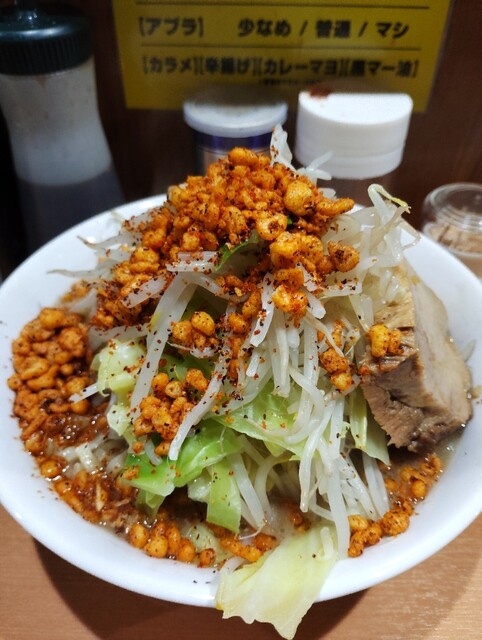 野菜、にんにく、アブラ、カラメがトッピング無料!さらに、辛揚げ(辛く味付けした揚げ玉)、カレーマヨのどちらかも無料でトッピングできます。 JR秋葉原駅昭和通り口から左に2分!!従業員一同笑顔でお待ちしたおります!