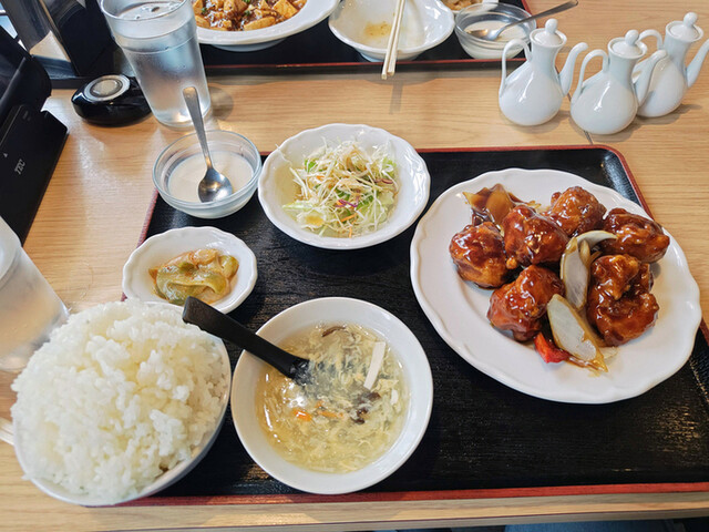 注文:黒酢鶏定食(週替り)大盛 ¥1,100