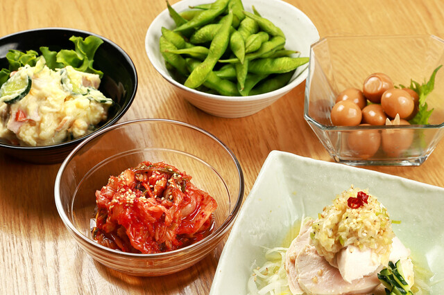 焼き・揚げ・水餃子の3種類の餃子のほか、小皿料理も豊富にご用意しております。