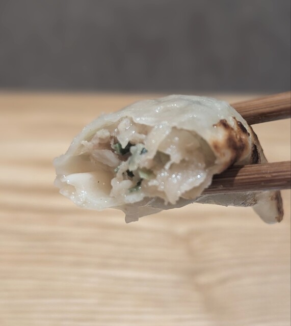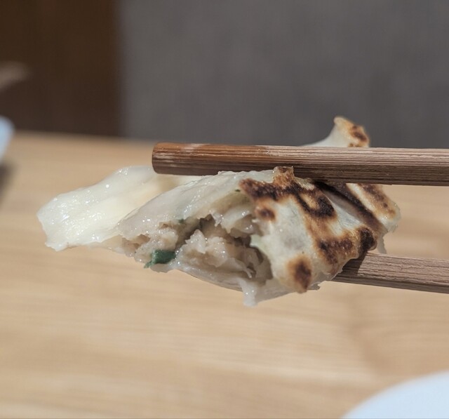 製麺所特製の皮は、厚みがありモッチリした食感です。