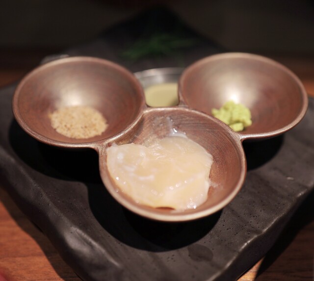 朝に記帳して午後行く感じらしい。 お昼で食べたい場合は 平日8:00ぐらいには並んで9:00記帳 休日だと遅くても7:30ぐらい? 午後の部15時7人目 18:50~ 特製昆布水つけ麺 塩1750円 食べ方をレクチャーしてくれる ①口の中をホタテにするためにホタテのカルパッチョを頂... 詳細を見る