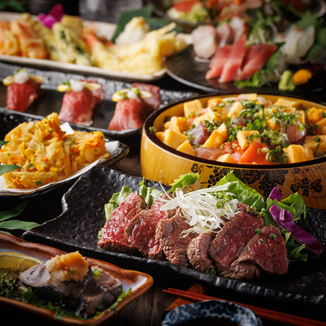 新鮮なお魚や上質なお肉を使用した九州料理をご提供◎おすすめは「ごま鯖」「金華鯖の一枚刺し」◎また博多野菜巻き串や熊本県産の馬刺しなども魅力です。そして自慢の「佐賀牛タン」を含めたご宴会向けコースも幅広くご用意。多彩なアルコールドリンクと共にご堪能ください!店内は2名様からご利用可能な個室席を豊富に完備。デートや接待・お食事会など、シーンを選ばずご利用可能です◎
