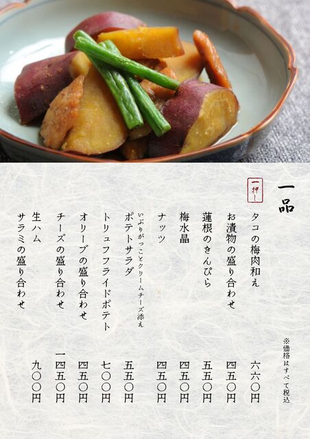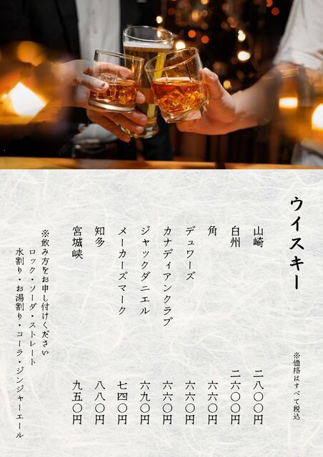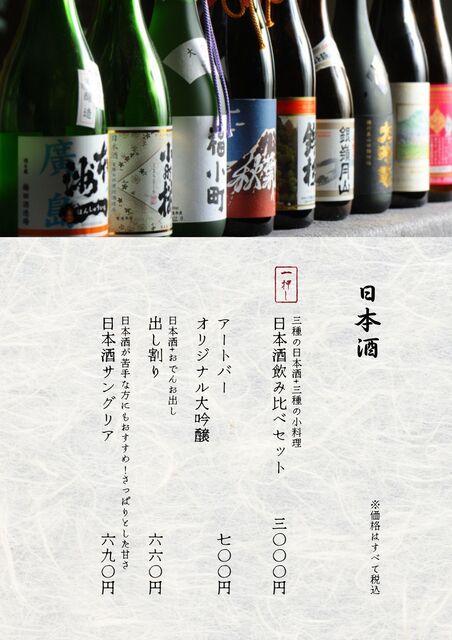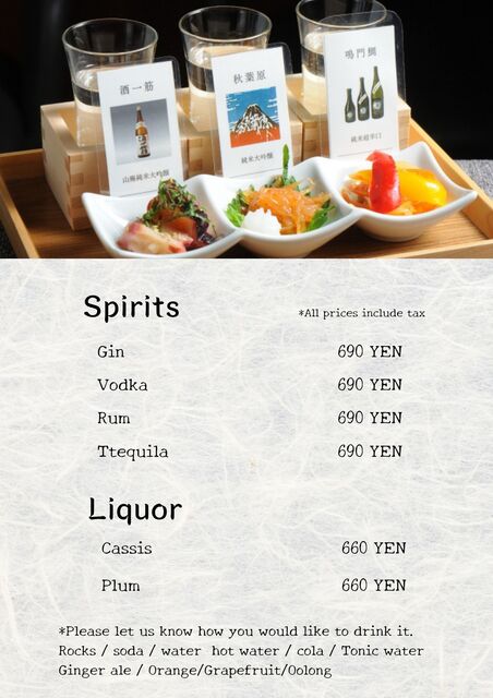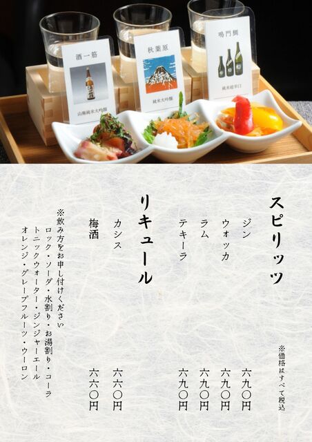 | ドリンク | 日本酒あり、焼酎あり、カクテルあり、日本酒にこだわる |