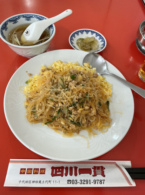 神田小川町の名店四川一貫。 社会人なりたての頃、まだ移転前のお店にはしょっちゅう出没していたものだ。 今でも、ここの料理がむしょうに食べたくなって、時々お邪魔している。 ランチタイムは、定食が2品と、名物ハルチャー(春雨チャーハン)が追加でラインナップされる。 もちろん、麺系メニュー... 詳細を見る