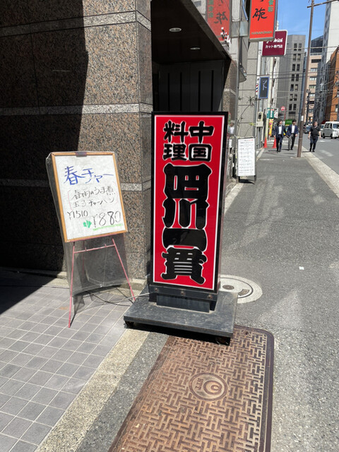 今日は、ちょっと足を伸ばして、プラプラとランチのお店を探しに出かけて入口にハルチャーと書いてある看板に目が行き四川一貫さんに入ることにしました。