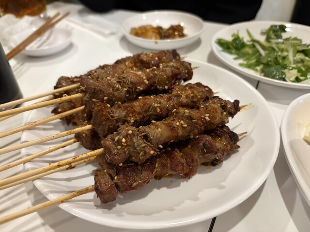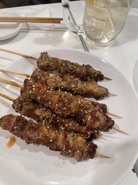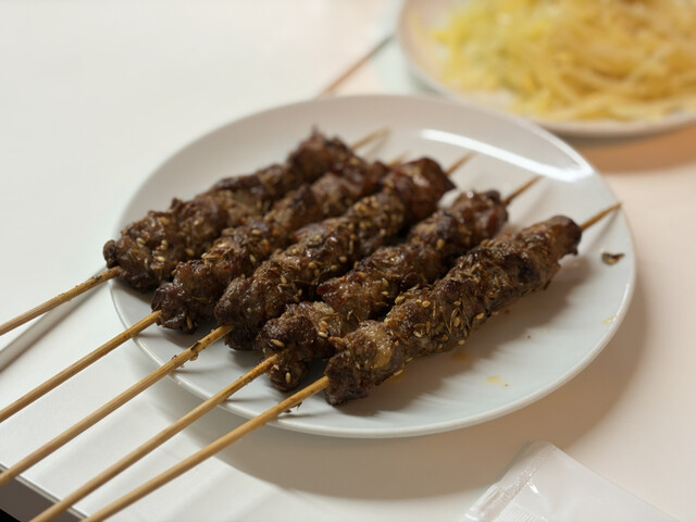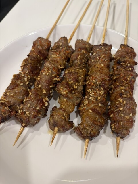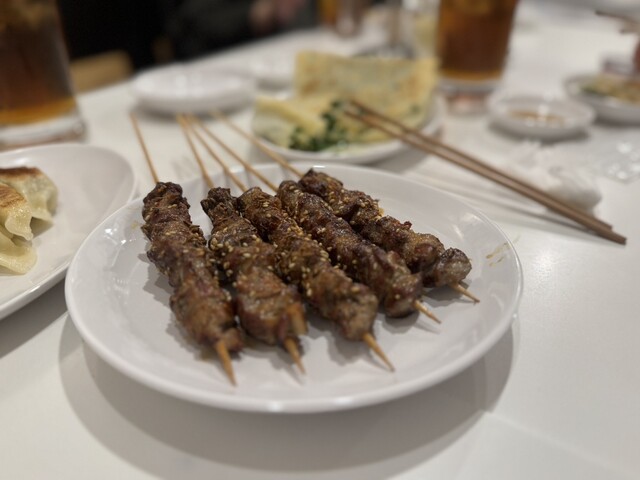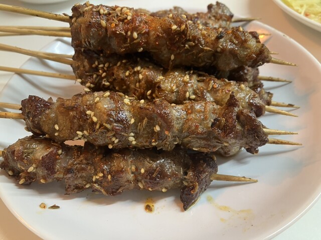 羊肉串はラム好きにはたまらない一皿。臭みはなく、スパイスの香りが立っていて、噛むほどに旨み...